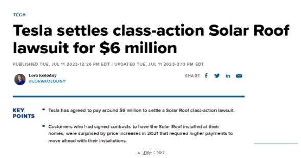 特斯拉在 2021 年宣布旗下“太陽(yáng)能屋頂”漲價(jià),要求簽訂了合同的用戶(hù)加錢(qián)安裝,因此招致了客戶(hù)集體訴訟。結果目前已經(jīng)出爐,特斯拉同意支付 600 萬(wàn)美元(IT之家注:約 4325.28 萬(wàn)人民幣)來(lái)結束這場(chǎng)集體訴訟。