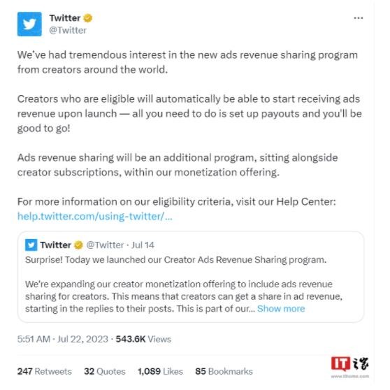 Twitter 上線(xiàn)創(chuàng )作者廣告收益分享幫助頁(yè)面,對該功能進(jìn)行說(shuō)明,包括如何獲取資格、在哪查看收益等問(wèn)題。