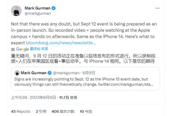 古爾曼:蘋(píng)果今年 iPhone 15 系列發(fā)布會(huì )仍采用預錄制模式 10:52:44