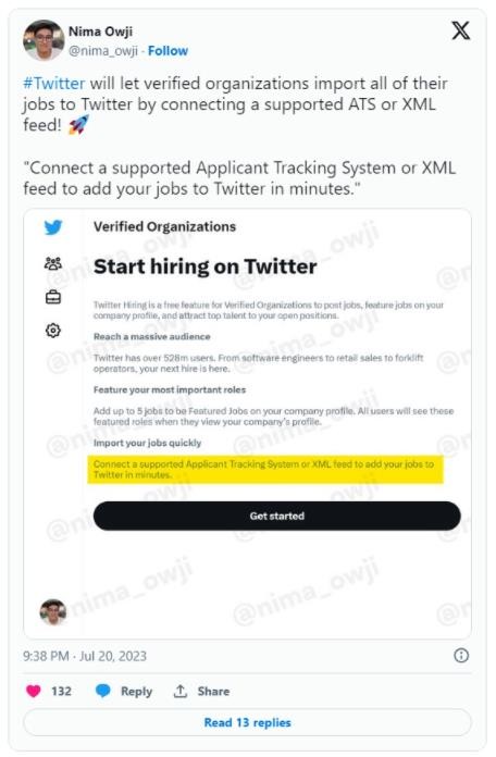X 公司已經(jīng)邀請多家企業(yè)入駐,支持 ATS 或者 XML 格式導入招聘信息,官方表示整個(gè)過(guò)程只需要幾分鐘就能完成,聲稱(chēng)可以幫助企業(yè)擴大招聘面,吸引更多人才。