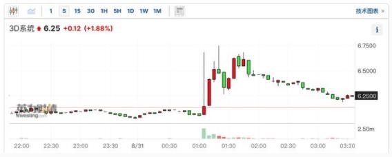 消息傳出后,3D 系統一度大漲超 10%,不過(guò)截至發(fā)稿,漲幅已回落至2% 以?xún)取?/p>