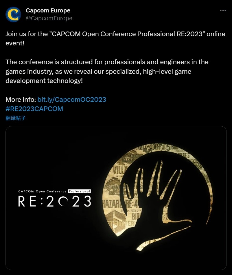 卡普空官宣“RE:2023”開(kāi)發(fā)者大會(huì ),旗下 RE 引擎將“支持新平臺”