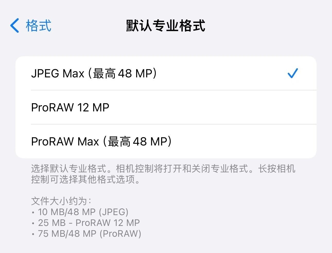 常規 1200 萬(wàn)像素,支持以 JPEG 或者 HEIF 格式保存