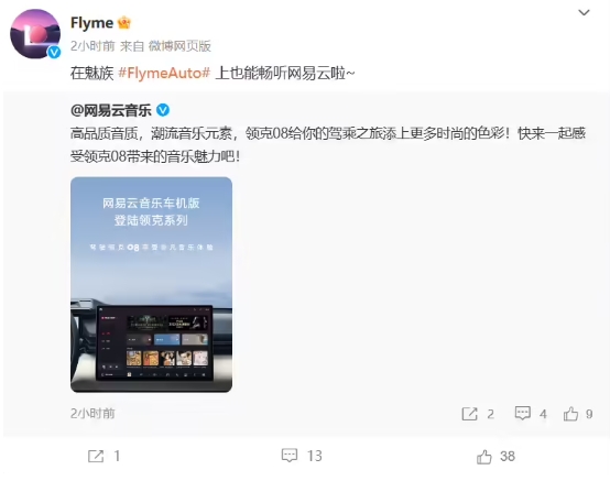 網(wǎng)易云音樂(lè )車(chē)機版登陸領(lǐng)克系列汽車(chē),支持魅族 Flyme Auto 平臺 15:31:19