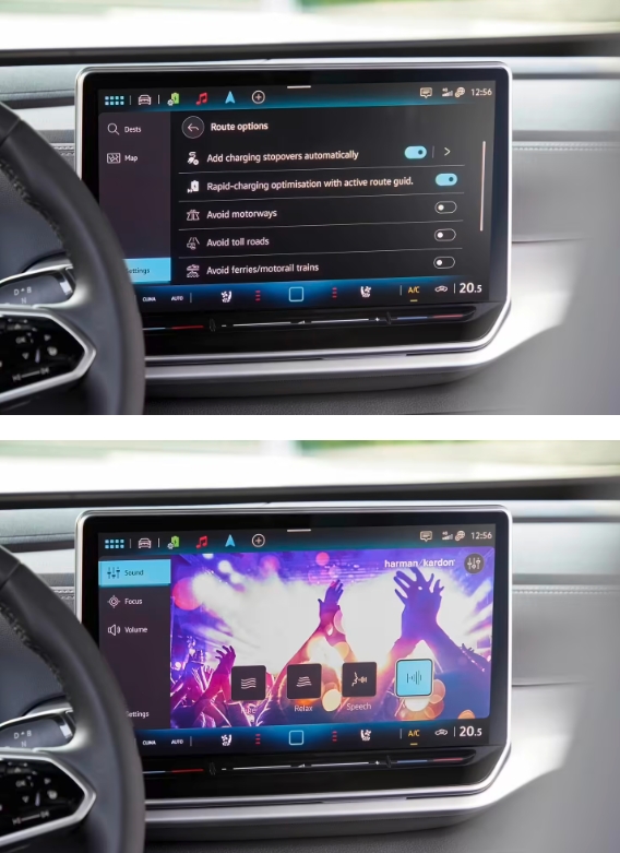 其他方面,大眾還為空調和音量滑塊加入燈效,并為用戶(hù)帶來(lái)了基于新操作邏輯的多功能方向盤(pán)。大眾還帶來(lái)了新的 IDA 語(yǔ)音助手、Harman Kardon 音響系統、480W 音樂(lè )輸出功率和 10 個(gè)揚聲器(包括中置揚聲器和低音炮)。
