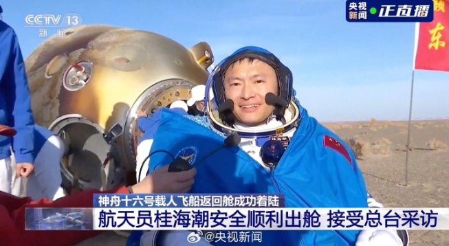 ▲ 桂海潮安全順利出艙,圖源央視新聞直播/侵刪