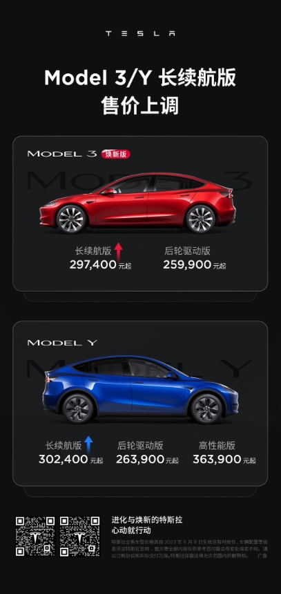 特斯拉中國宣布,Model 3 長(cháng)續航版及 Model Y 長(cháng)續航版漲價(jià)(注:不影響其他版本車(chē)型)。