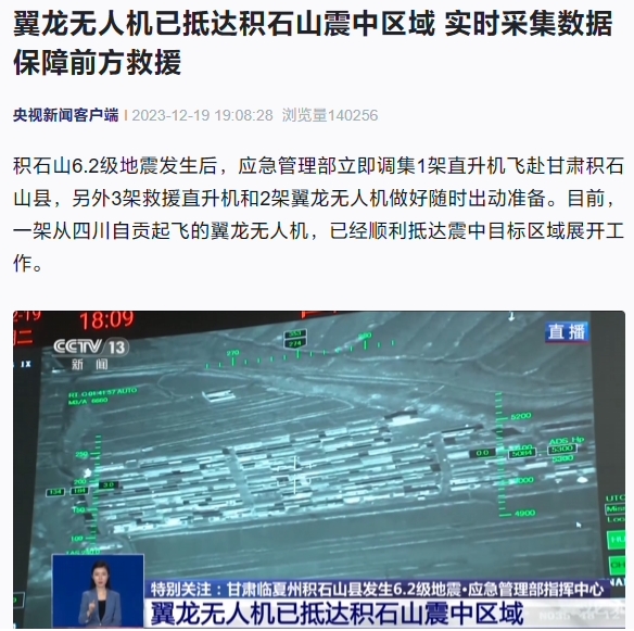 翼龍-2H 無(wú)人機再赴甘肅地震災區執行任務(wù):可定向恢復 50 平方公里公網(wǎng)通信 09:32:29
