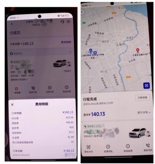 還沒(méi)等體驗到所謂的“優(yōu)惠價(jià)”,一次與乘客閑聊中,曹師傅發(fā)現,平臺抽傭比例極高,且金額與乘客實(shí)付對不上:1 月 5 日 22 時(shí)多,他在平臺接到一個(gè)從虹橋火車(chē)站去往北蔡中學(xué)的“大單”,全程 36.86 公里。到達目的地后,他隨口打聽(tīng)了乘客支付的訂單價(jià)才覺(jué)不對。“乘客實(shí)付 140.13 元,但在平臺的司機端顯示乘客實(shí)付 116.92 元,扣完傭金到手只有 86.79 元,抽成比例高達 38%!中間這 20 多元去哪兒了?”