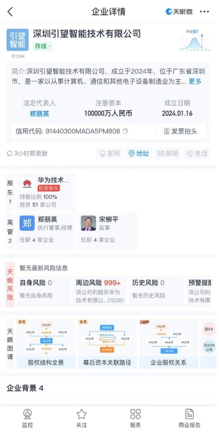 華為車(chē) BU 新公司“引望”正式成立注冊資金 10 億