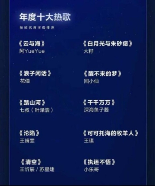 同樣在 2021 年,騰訊音樂(lè )自家公布的年度歌曲榜單中,十首歌全是被貼上“抖音神曲”標簽的大熱作品,背后的歌手們除王靖雯外,全部帶有“抖音音樂(lè )人”的官方認證。而王靖雯雖無(wú)認證,卻也是抖音平臺中作用數百萬(wàn)粉絲的頭部網(wǎng)紅。