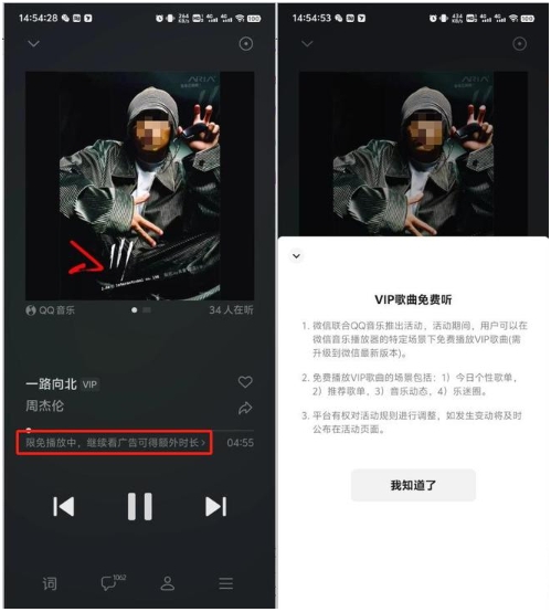 具體路徑:小程序下拉頁(yè)面-音樂(lè )-「看廣告免費聽(tīng)VIP音樂(lè )活動(dòng)」橫幅-看廣告即可。