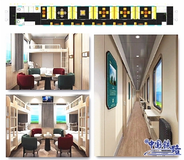 該趟專(zhuān)列可提供休閑度假、美食觀(guān)光、研學(xué)旅行等多種主題,編組 17 輛,全列定員 466 席,包括高級軟臥 3 輛、高級硬臥 10 輛、餐車(chē) 1 輛、多功能娛樂(lè )車(chē) 1 輛、宿營(yíng)車(chē) 1 輛、發(fā)電車(chē) 1 輛。