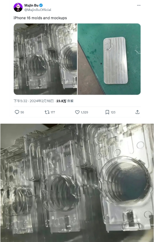 消息源 @MajinBuOfficial 的推文,發(fā)現他還分享了蘋(píng)果 iPhone 16 的壓鑄模具,從而添加了新的證據,表明 iPhone 16 基礎款采用垂直相機島設計。