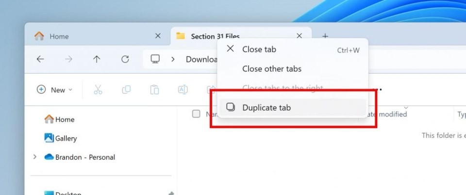 此更新帶來(lái)在文件資源管理器中通過(guò)右鍵點(diǎn)擊選項卡來(lái)復制選項卡的功能。