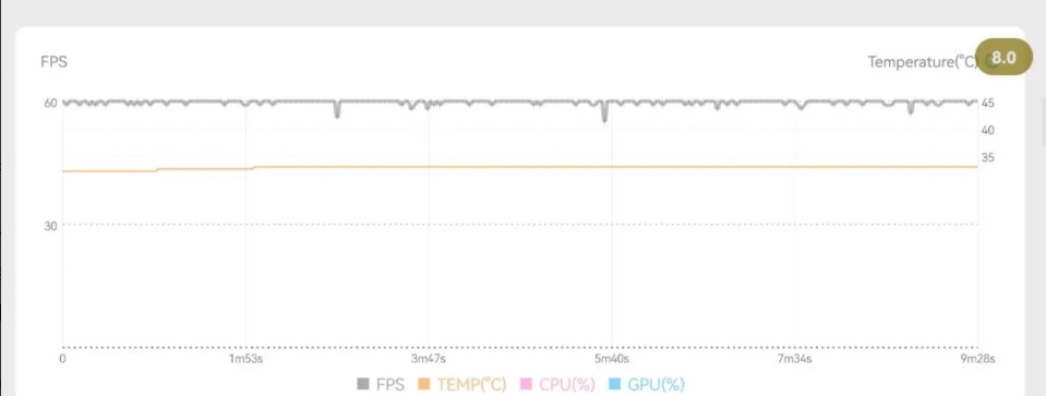 在實(shí)際游戲中,我們對市面上受眾用戶(hù)較多的《王者榮耀》進(jìn)行測試,我們將畫(huà)質(zhì)調至最高,兩把游戲下來(lái),麥芒30基本穩定在60幀左右,游戲中的幀率曲線(xiàn)幾乎要成為一條直線(xiàn)。所以這款產(chǎn)品應付日常使用和輕度游戲基本是沒(méi)有什么問(wèn)題的。