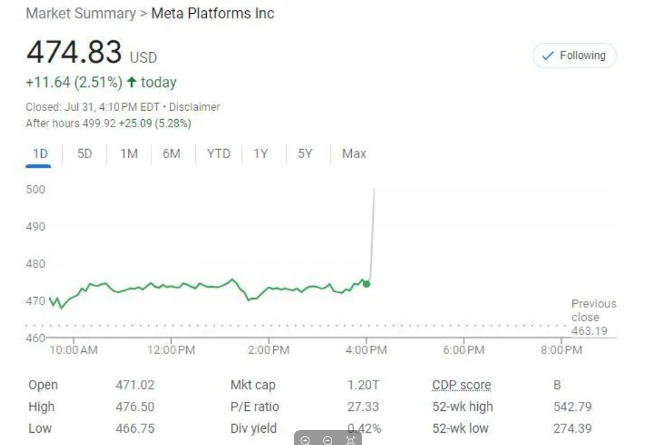 由于二季度Meta的營(yíng)收和盈利均高于預期,沒(méi)有再上調全年資本支出的區間上限,對全年總支出的指引也沒(méi)有再度上修,而且對三季度收入的指引區間中點(diǎn)超出市場(chǎng)預期,盤(pán)后漲超5%。