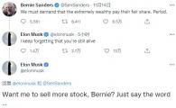 世界首富伊隆·馬斯克周日與美國參議員伯尼·桑德斯爆發(fā)口水戰并提到賣(mài)出更多特斯拉股票,一天前桑德斯在推特上寫(xiě)道:我們必須要求那些