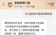 淘寶將為 88VIP 用戶(hù)推出無(wú)限次的退貨包運費權益,每單最高可抵免 25 元,目前正在灰測中。目前該權益僅部分用戶(hù)可以使用,近兩天