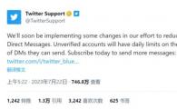 Twitter(推特)官方今日宣布,將正式限制未經(jīng)驗證(非 Twitter Blue)賬戶(hù)每天發(fā)送的直接消息(DM,類(lèi)似于國內的私信)數量,官方稱(chēng)此舉是為了減少垃圾消息的產(chǎn)生量