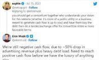 當地時(shí)間上周六,埃隆·馬斯克表示,受廣告收入下降近 50% 和沉重的債務(wù)負擔影響,推特現金流仍然為負,未達到他 3 月份做出的推特