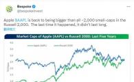 根據彭博社報道,蘋(píng)果公司的市值已超過(guò)羅素 2000 指數(Russell 2000)總和兩周時(shí)間,這是有記錄以來(lái)最長(cháng)的一次。圖片來(lái)自網(wǎng)絡(luò ) 侵刪