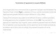 據路透社報道,總部位于阿姆斯特丹的科技投資公司 Prosus NV 周一表示,已經(jīng)終止47 億美元收購印度支付平臺 BillDesk 的交易,并